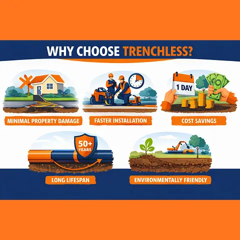 BenefitsWhy Choose Trenchless Sewer ReplacementMinimal Property DamageFaster InstallationCost Savings on RestorationLong-Lasting ResultsEnvironmentally Friendly
